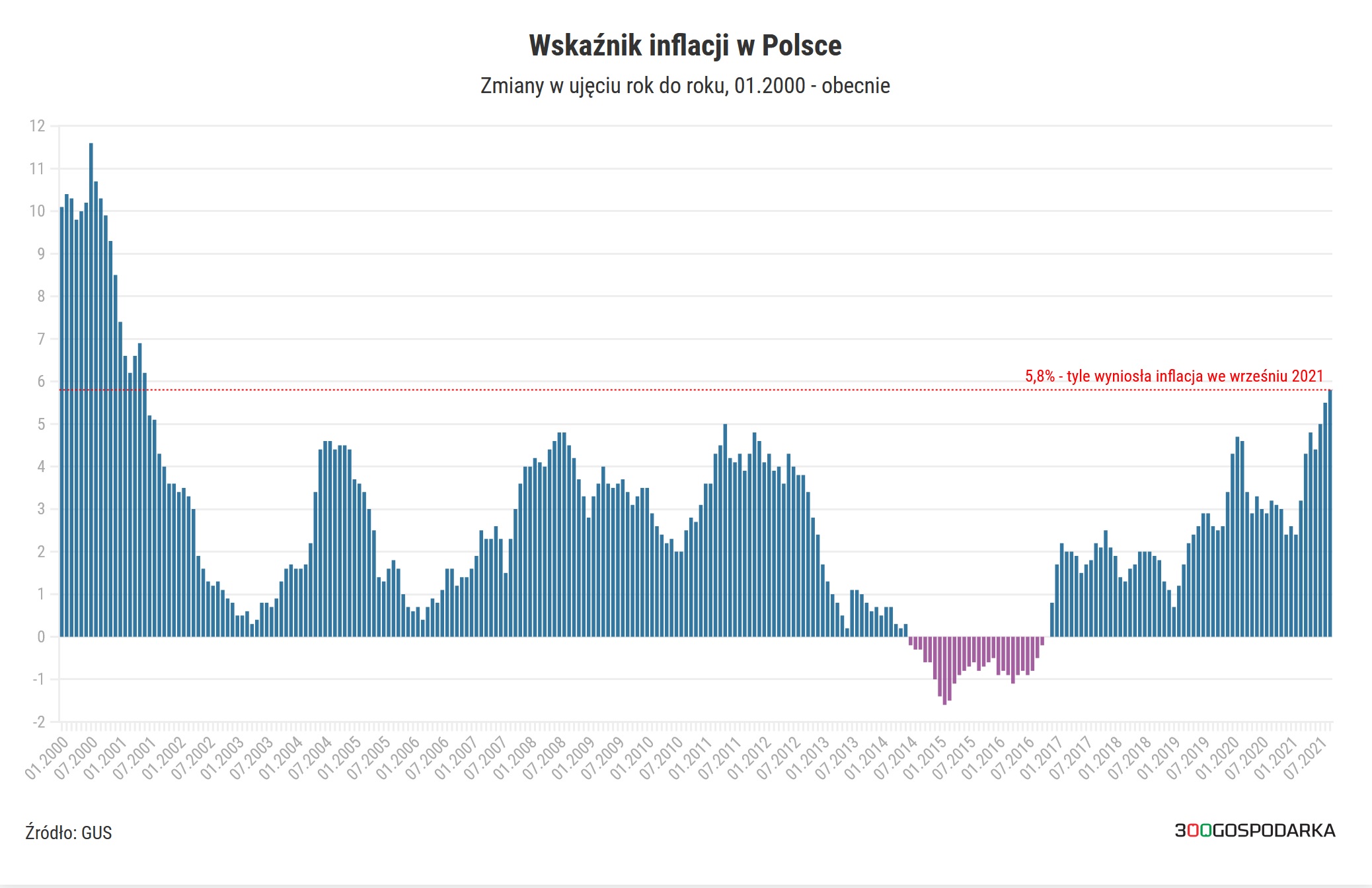 Inflacja w sierpniu 2021 roku w Polsce wyniosła 54 procent rok do roku. Przeciwnym zjawiskiem do inflacji jest deflacja spadek ogólnego poziomu cen dóbr i usług w gospodarce. Od marca 2009 r.